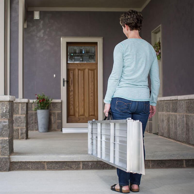 FSR001 est une rampe portable, facile à installer et à plier, idéale pour les fauteuils roulants et les scooters. Fabriquée en aluminium léger et facile à transporter, cette rampe pliante pour valise est dotée de poignées ergonomiques et d'une charnière sur toute la longueur pour plus de solidité et de stabilité. Sa construction légère en aluminium, son pliage pratique et sa possibilité de séparation en deux parties faciles à transporter vous permettent de l'emporter partout et de la ranger tout aussi facilement.